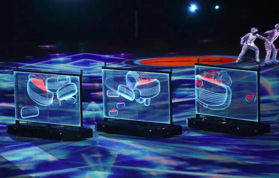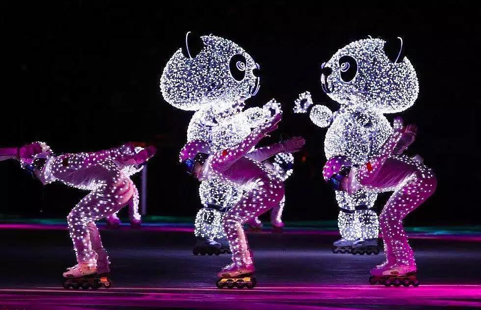 24位旱冰表演者代表第24屆冬季奧運會,他們借助高科技實現的影像變換,在舞臺上滑出漂亮的曲線軌跡,與智能機器人相映成趣,帶來了一場融合科技與文化的視聽盛宴。