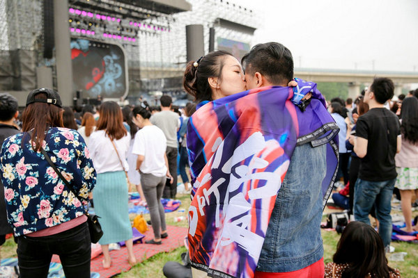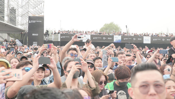 音樂節(jié)從下午2點一直持續(xù)到晚上10點,夜幕降臨時,OneRepublic一首《apologize》將現(xiàn)場氣氛推向高潮,觀眾齊呼吶喊向舞臺比“愛”。