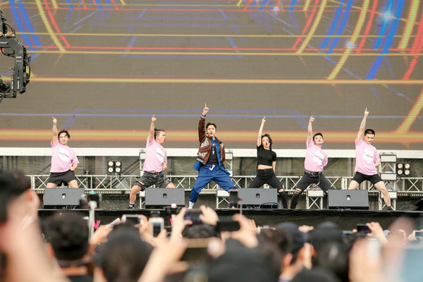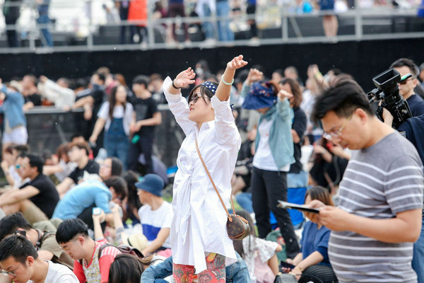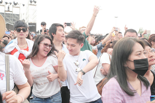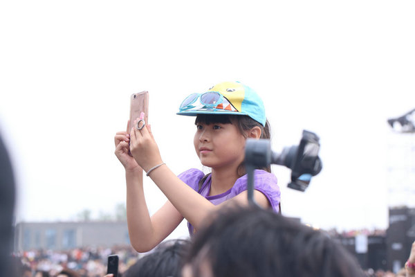 臺下的粉絲隨著臺上的音樂,情不自禁地舞動起來。